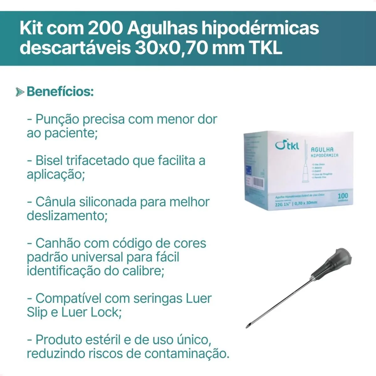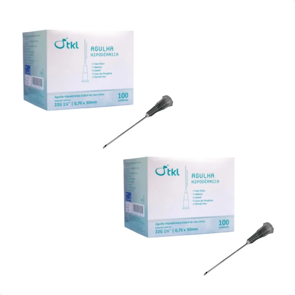 Kit com 200 Agulhas hipodérmicas descartáveis 30x0,70 mm (22G 1 1/4?) TKL