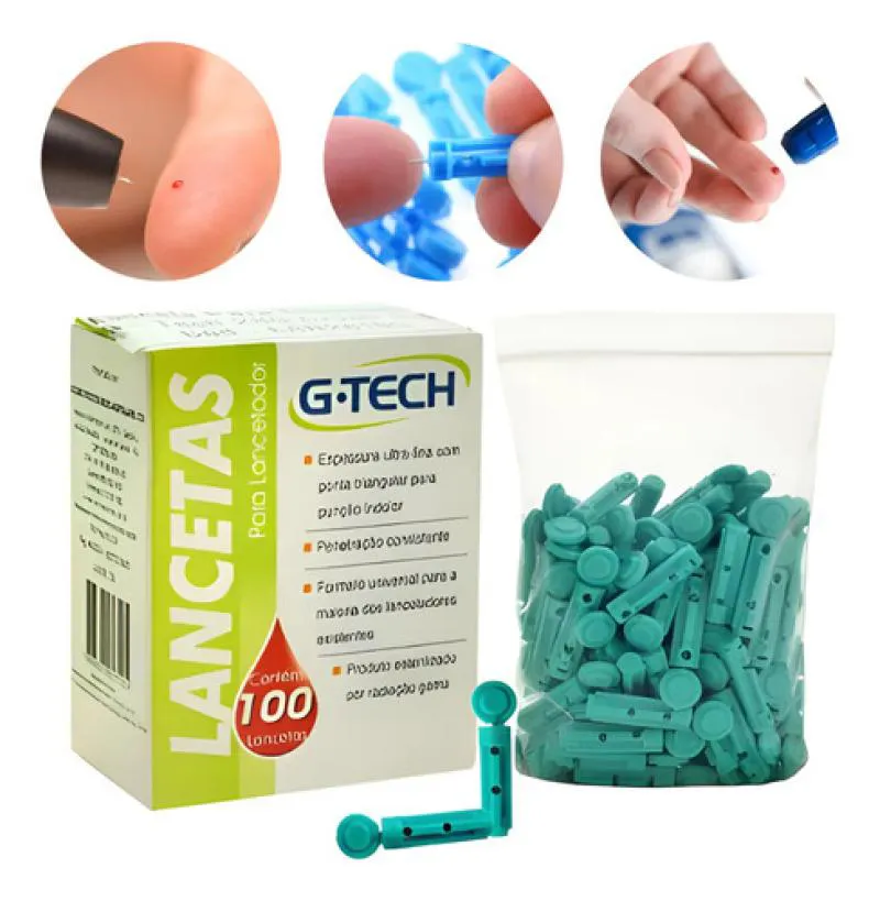 Kit com 200 Lancetas G-Tech Medir Diabetes Glicose Agulha - Azul