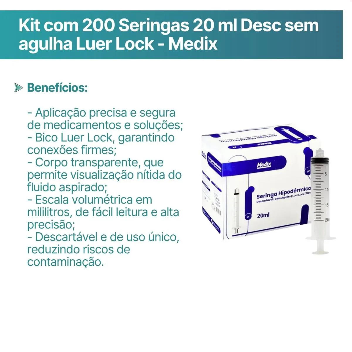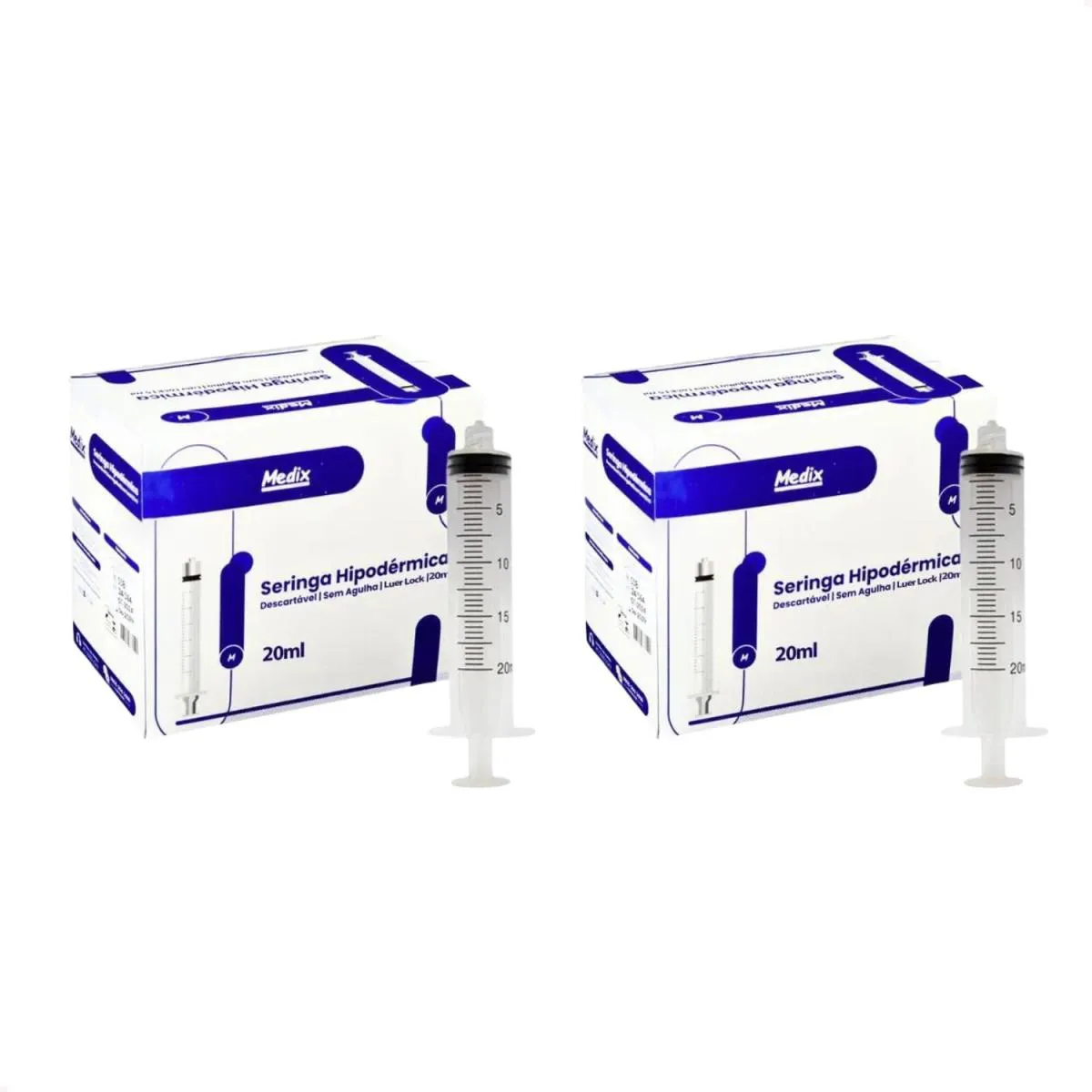 Kit com 200 Seringas 20 Ml Desc sem Agulha Luer Lock - Medix