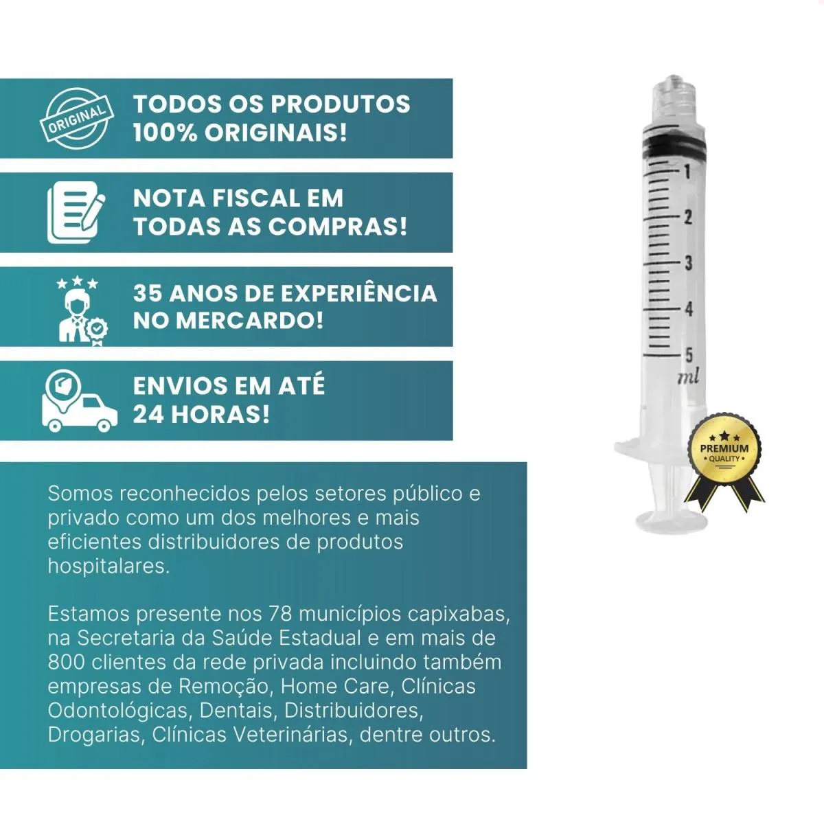 Seu bico Luer Lock garante conexão firme com a agulha, evitando vazamentos e desconexões acidentais. Possui corpo transparente com graduação volumétrica clara, deslizamento suave do êmbolo e anel de retenção que impede o desprendimento.