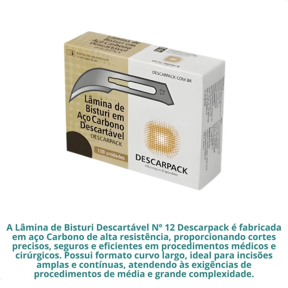Lâmina de Bisturi Descartável Nº 12 ; Descarpack | Caixa com 100 Unidades