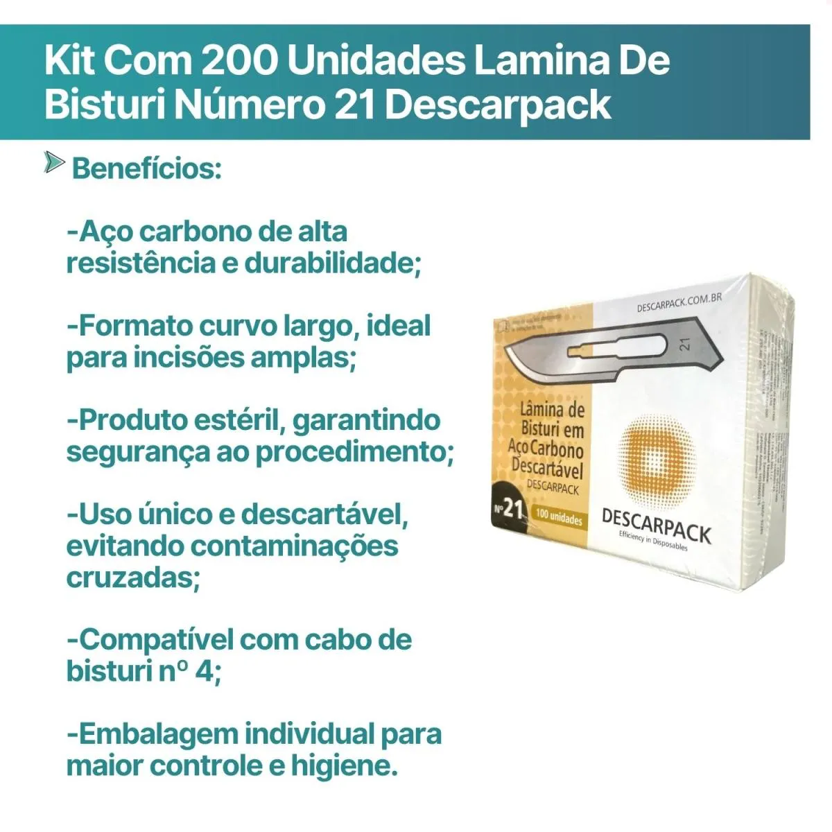 Lâmina de Bisturi Descartável Nº 21 ; Descarpack | Caixa com 100 Unidades