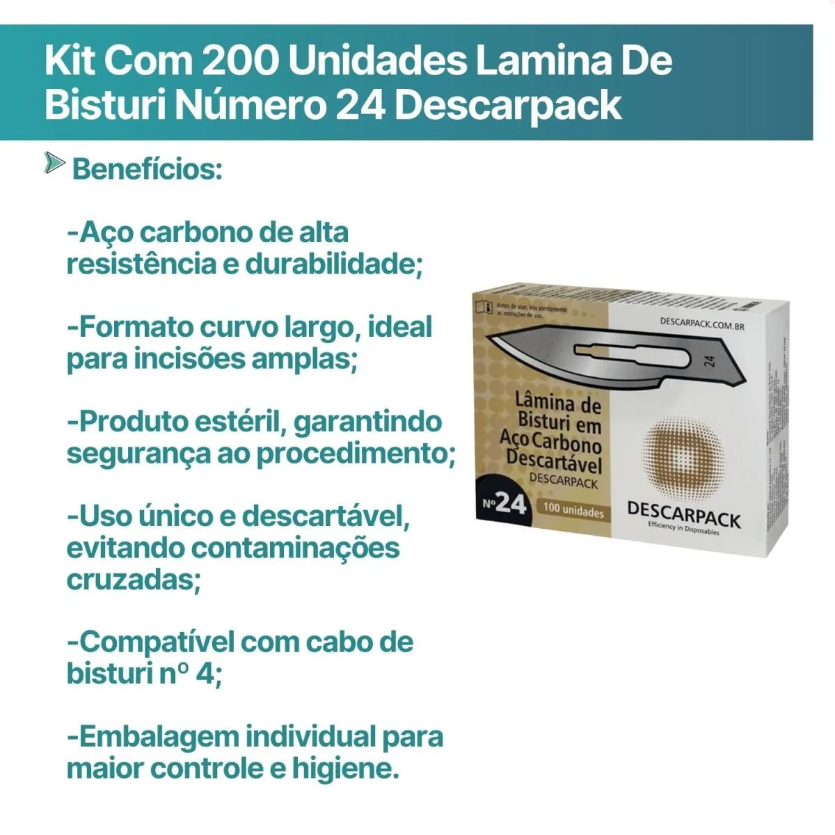 Kit com 200 Unidades Lamina de Bisturi Número 24 Descarpack