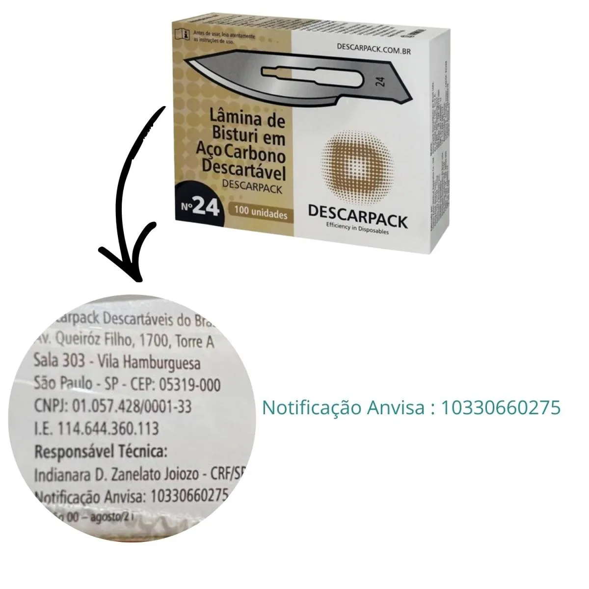 Lâmina de Bisturi Descartável Nº 24 ; Descarpack | Caixa com 100 Unidades