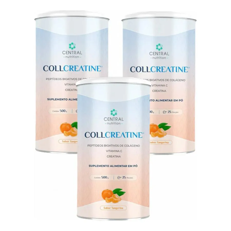 KIT COM 3 COLLCREATINE 500G - CENTRAL NUTRITION SABOR:TANGERINA