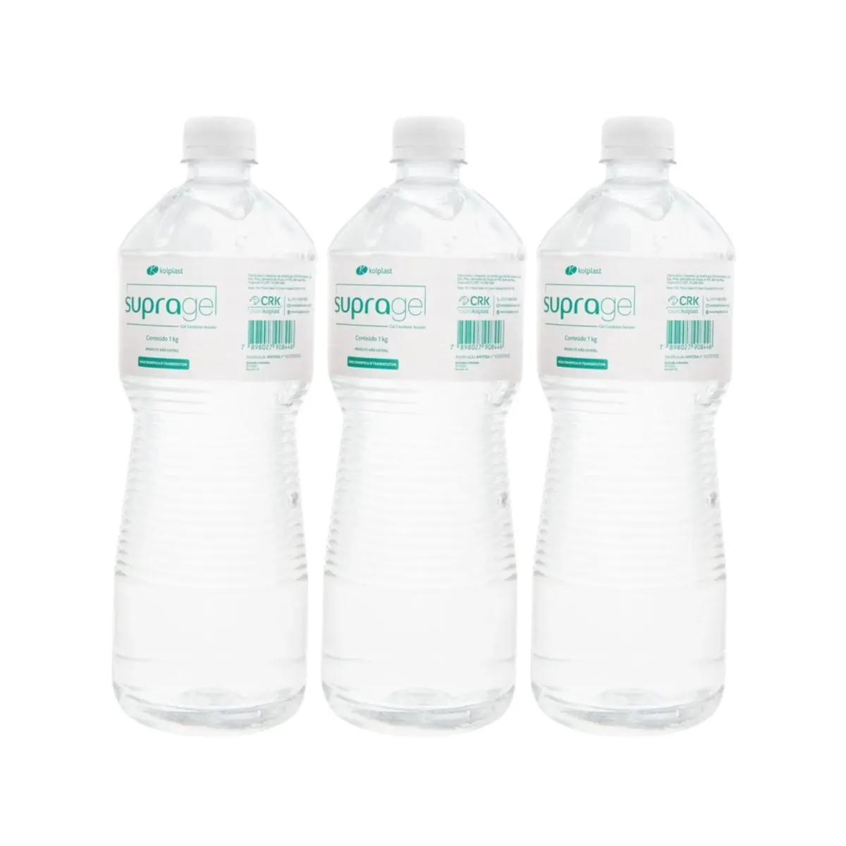 Kit com 3 Gel Condutor Incolor Supragel Kolplast 1Kg Inodoro