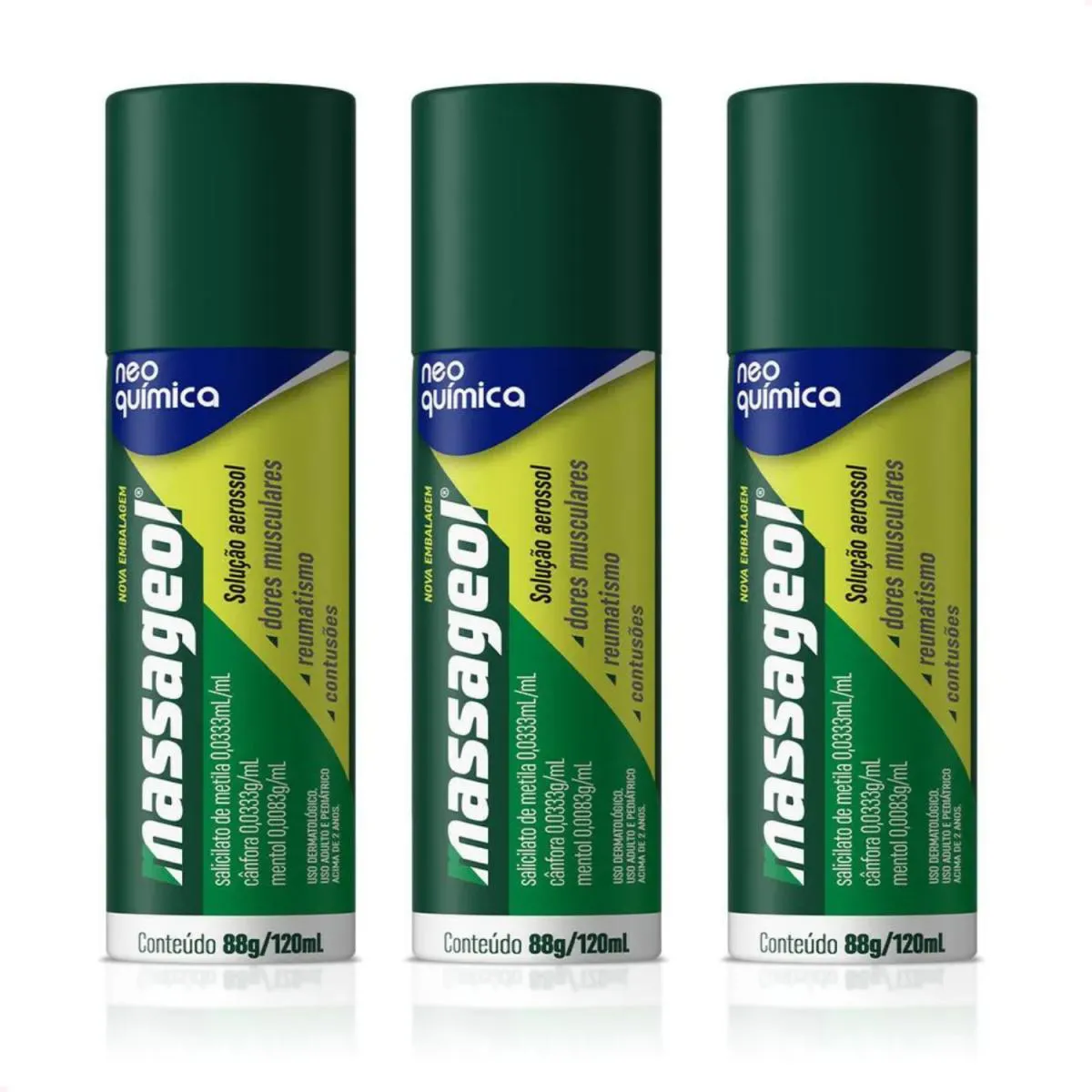 Kit com 3 Massageol em Aerossol Spray 120Ml Dores Musculares