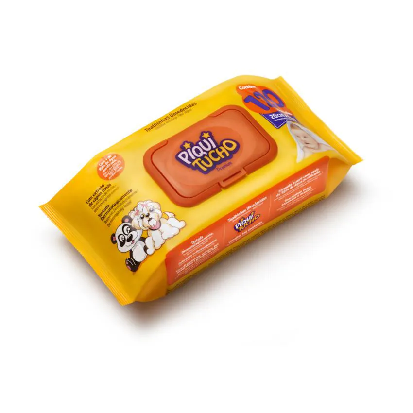 As Toalhinhas Umedecidas Piquitucho Premium são formuladas com ingredientes suaves, Glicerídeos da manteiga de Karité, extratos de Capim limão e Aloe Vera, proporcionando toque macio e limpeza delicada e eficaz