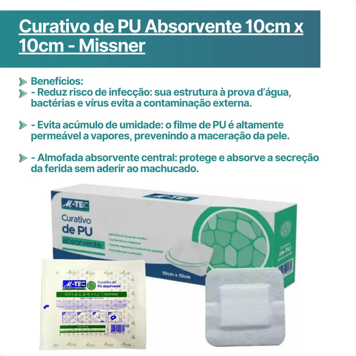 KIT COM 30 UNIDADES (30 curativos) - Curativo de PU absorvente 10cm x 10cm - Missner