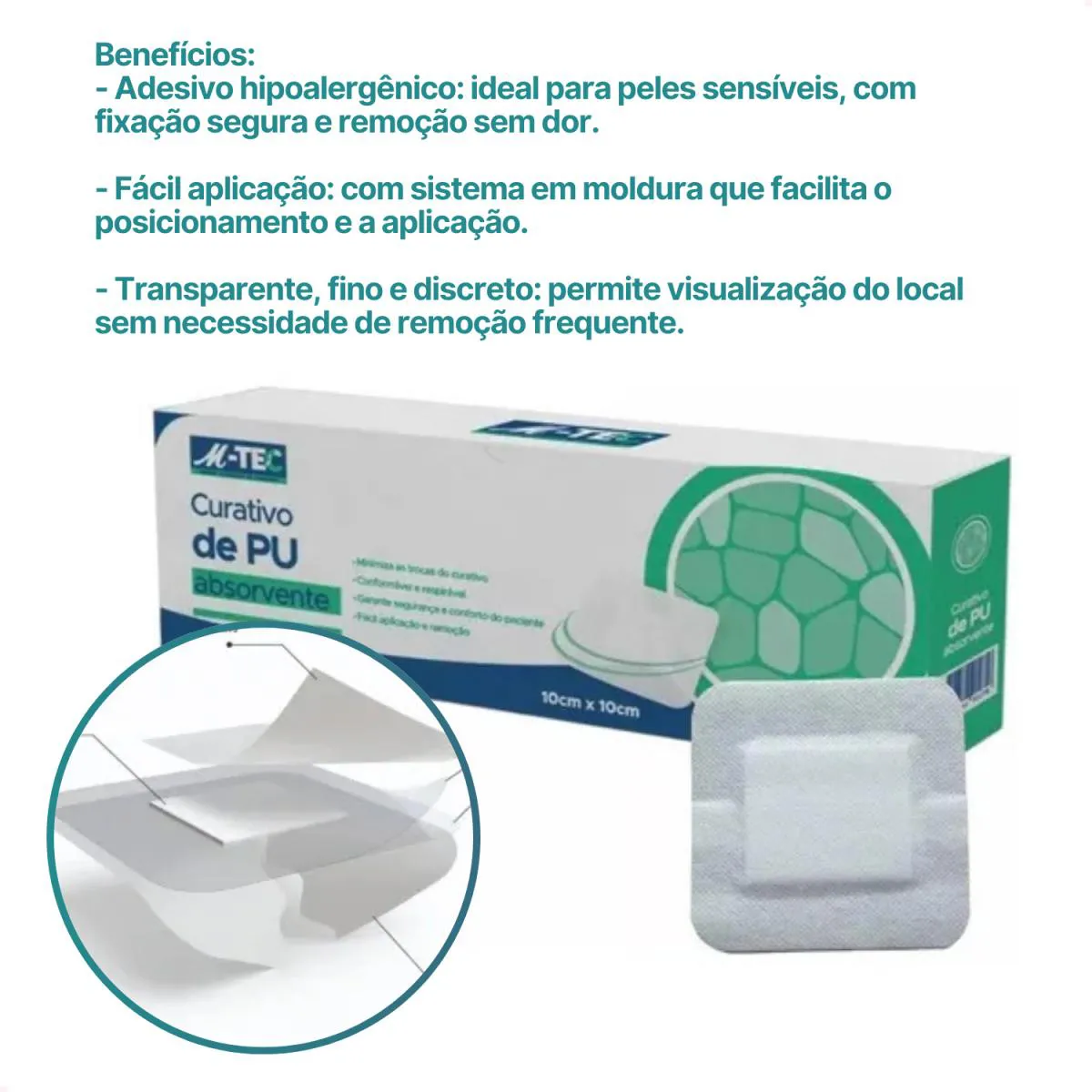 Kit com 30 - Curativo de Pu Absorvente 10Cm X 10Cm - Envio Imediato