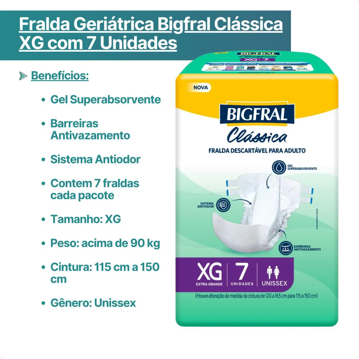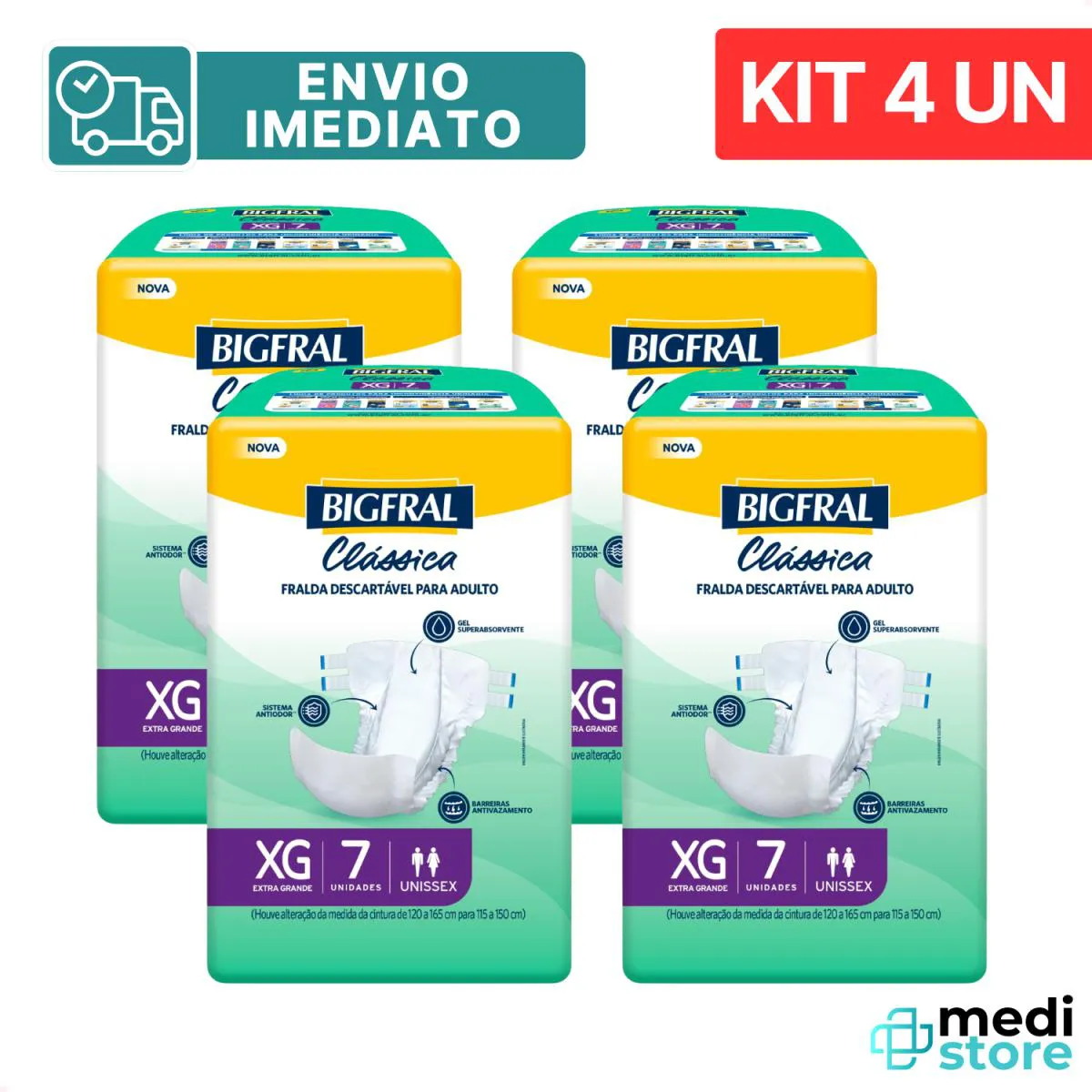 Kit com 4 - Fralda Bigfral Clássica XG com 7 Unidades cada - Conforto e Proteção para o Dia a Dia