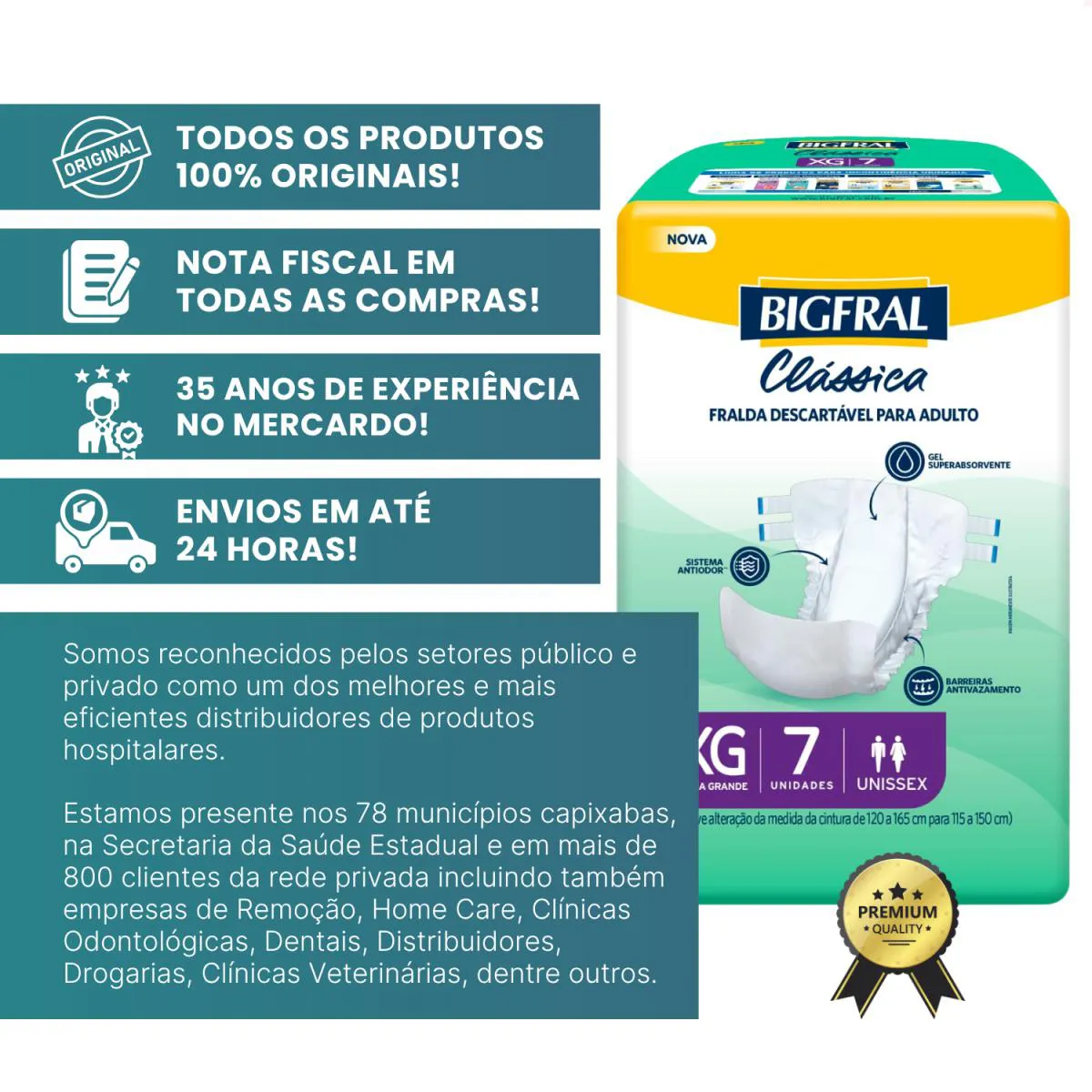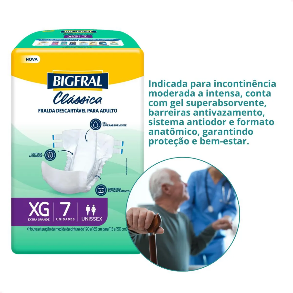A Bigfral Clássica XG é ideal para quem precisa de segurança em trocas frequentes, oferecendo conforto, rápida absorção e cuidado com a pele. Indicada para incontinência moderada a intensa, conta com gel superabsorvente, barreiras antivazamento, sistema antiodor e formato anatômico, garantindo proteção e bem-estar.