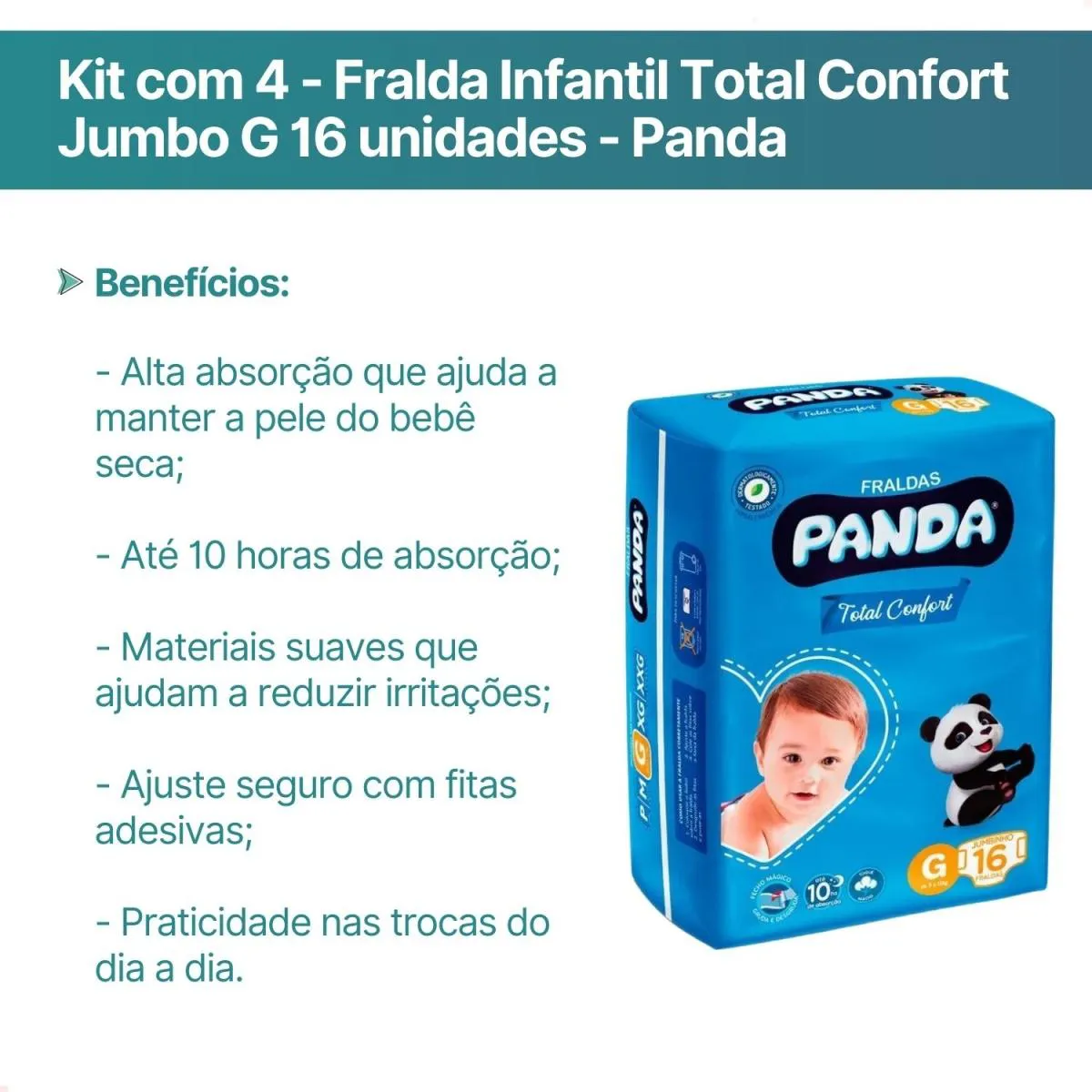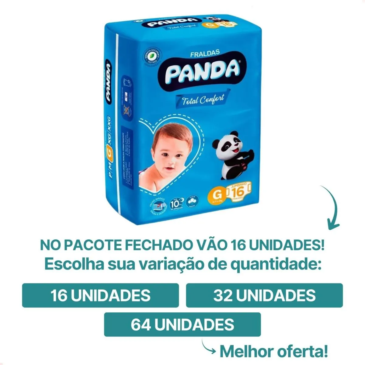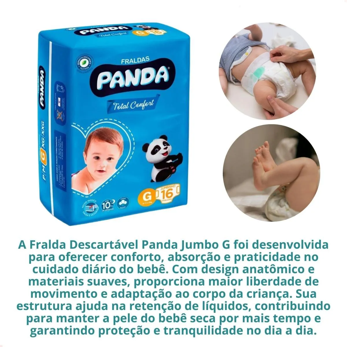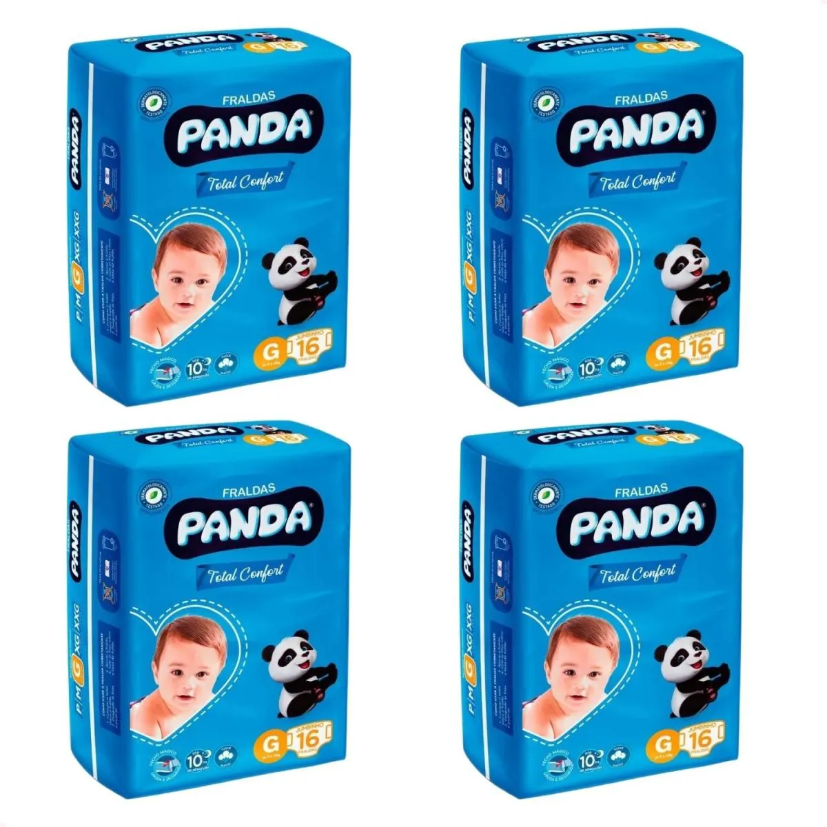 Kit com 4 - Fralda infantil Total Confort Jumbo G 16 unidades cada pacote (64 unidades no total) - Panda