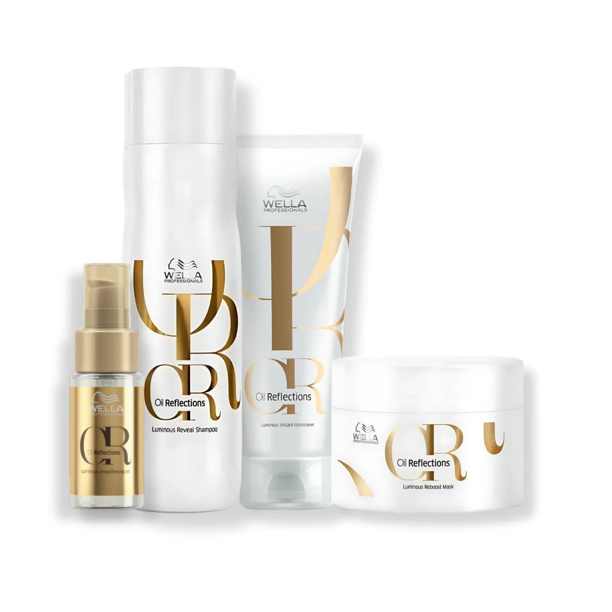 O kit Wella Professionals Oil Reflections é um conjunto de produtos capilares completo, composto por Shampoo, Condicionador, Máscara e Óleo Capilar, desenvolvido especificamente para tratamento de cabelos secos. Sua fórmula é rica em óleos preciosos de camélia e extrato de chá branco, criado para oferecer um tratamento capilar especializado.