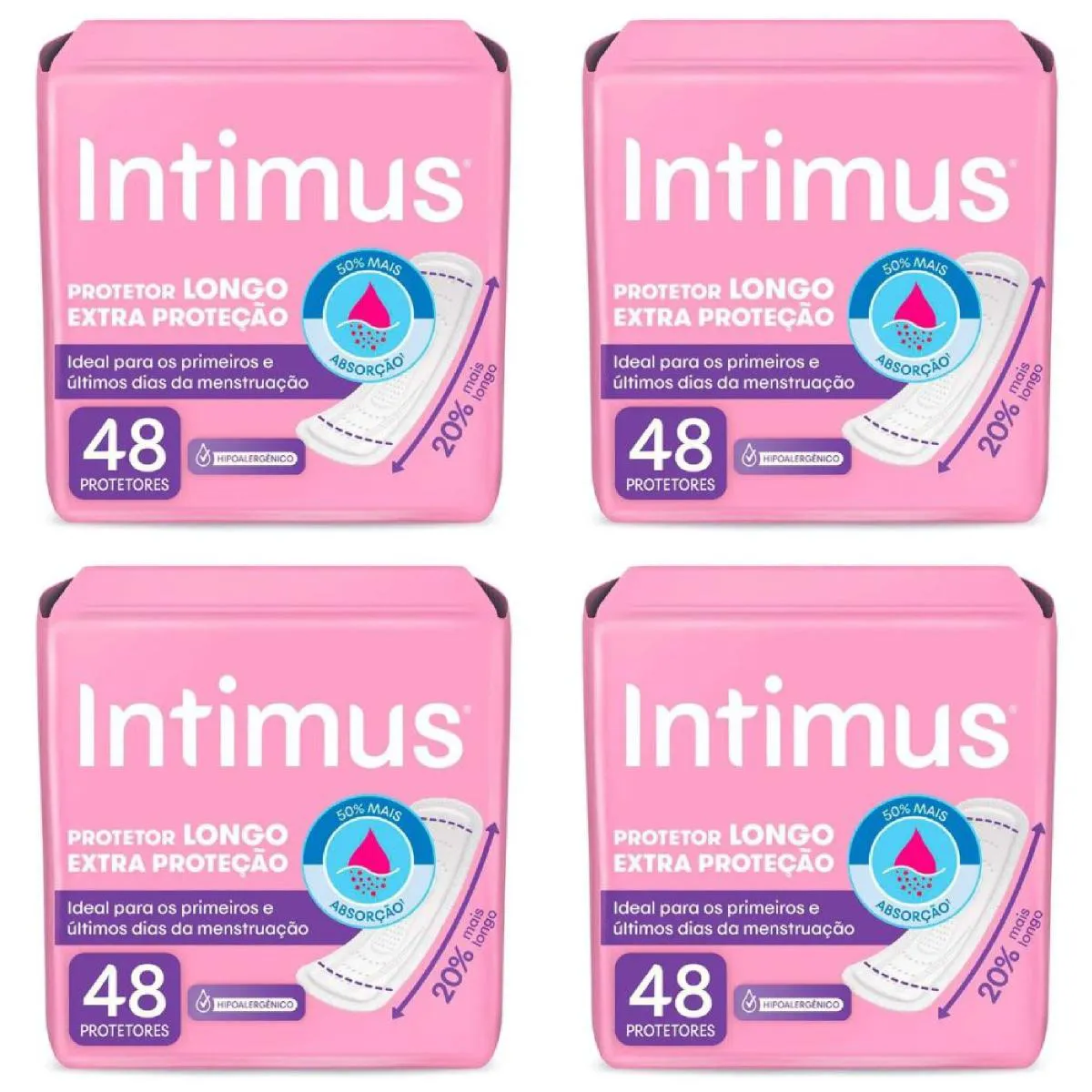 Kit com 4 Unidades de Protetor Intimus Diário Longo Extra Proteção com 48 Unidades Cada