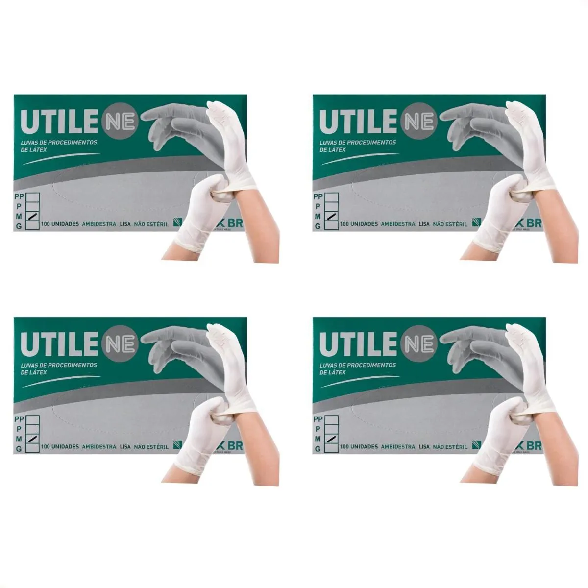 Kit com 400 - Luvas Proc. Látex Tamanho M com Pó - Utile Ne