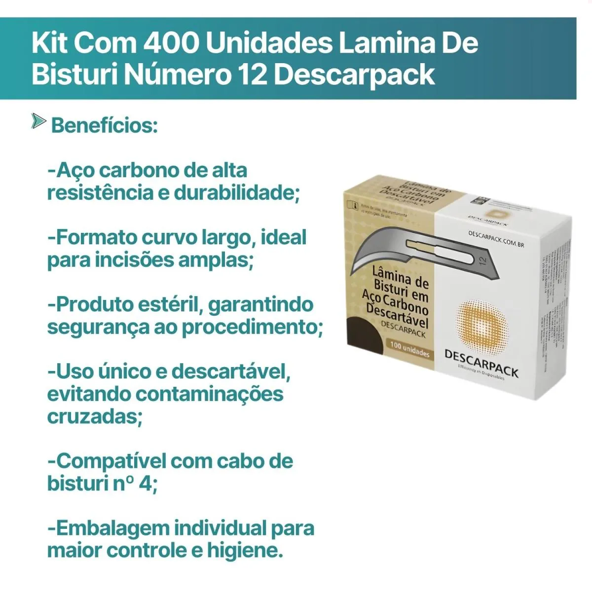 Kit com 400 Unidades Lamina de Bisturi Número 12 Descarpack