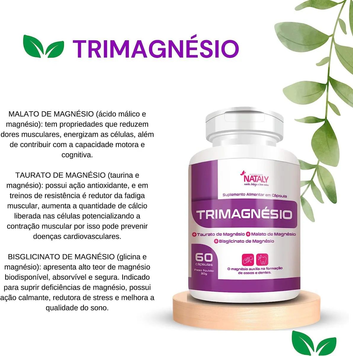 TRI MAGNÉSIO 60 CAPSULAS DE 500MG NATALY.