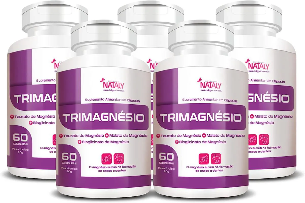 Kit com 5 - Tri Magnésio Premium (taurato, Malato e Quelato) 60 Capsulas de 500mg Nataly