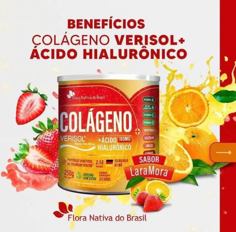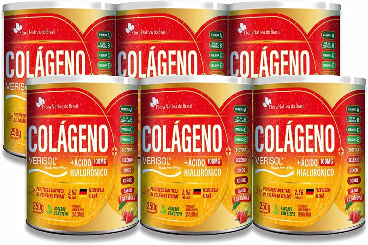 KIT COM 6 COLáGENO VERISOL + ÁCIDO HIALURôNICO 250G SABOR LARAMORA - FLORA NATIVA DO BRASIL