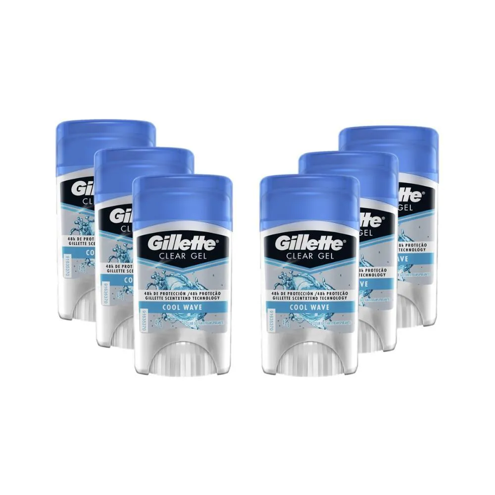 KIT COM 6 DESODORANTES GILLETTE ANTITRANSPIRANTE CLEAR GEL COOL WAVE 45G