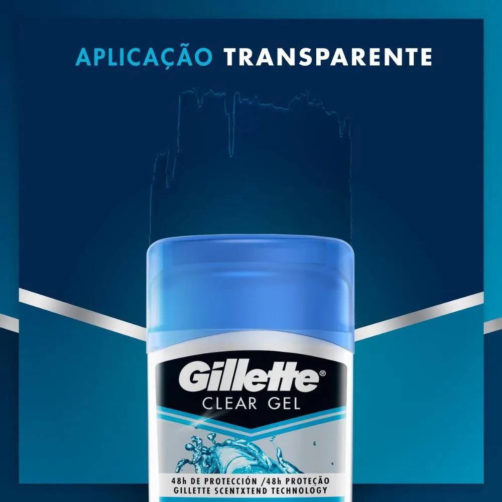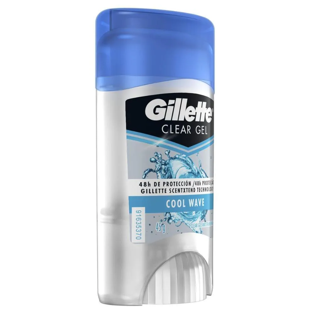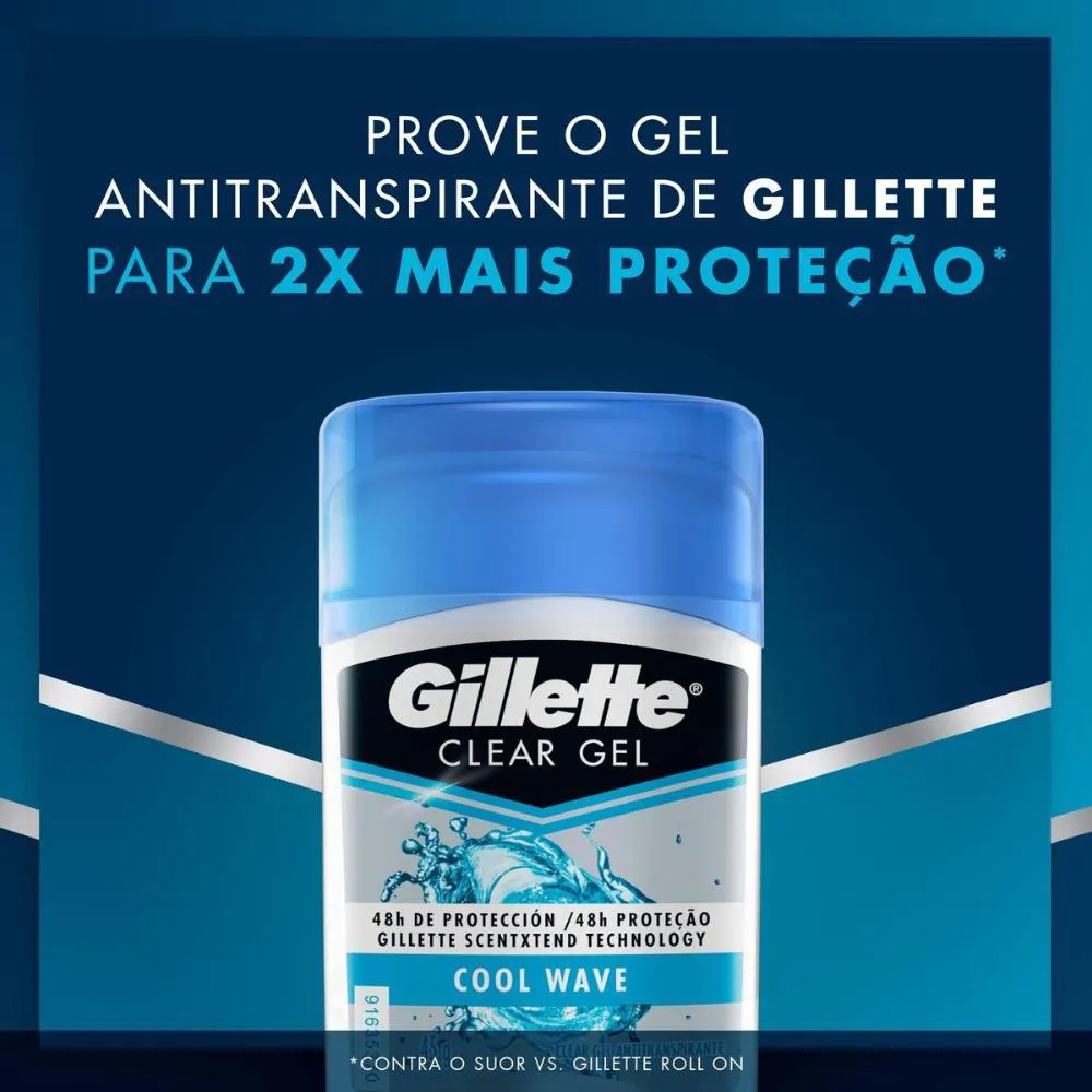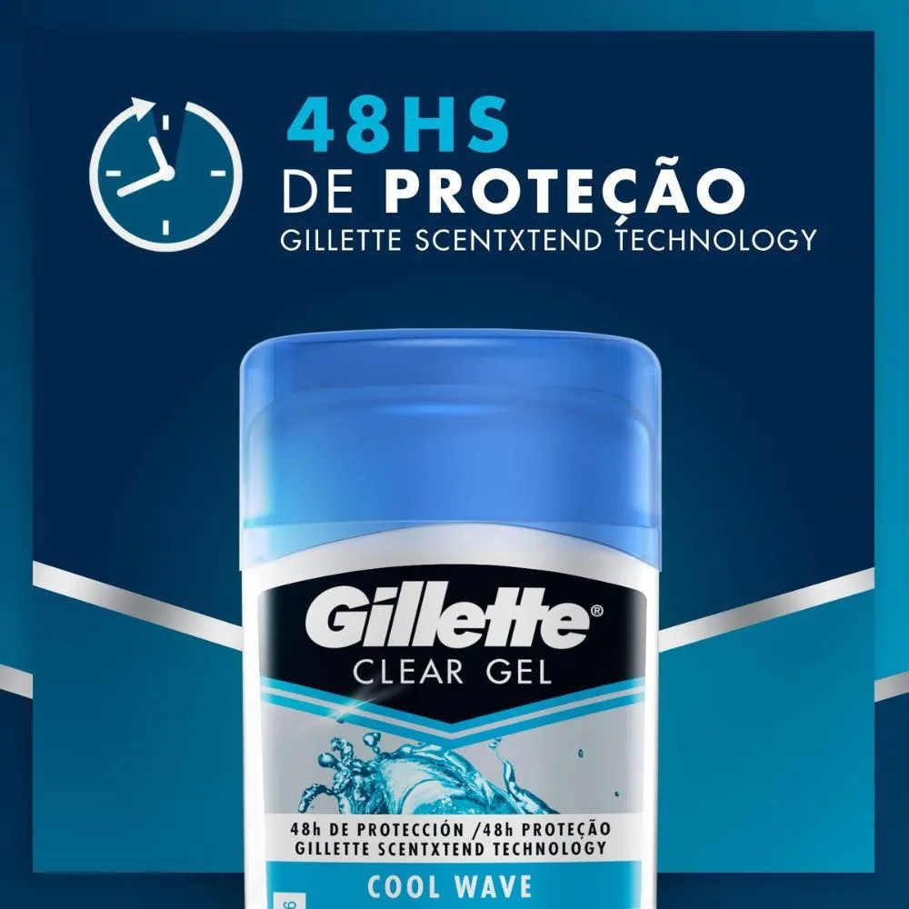 Elevada eficácia na eliminação dos maus cheiros. Além disso, conta com um sistema de tripla proteção que o mantem protegido por longo tempo. Aplicação transparente. Experimente Cool Wave® com aroma limpo e refrescante. O Kit contém 6 unidades de desodorantes Gillette Antitranspirante Clear Gel Cool Wave 45g. *Compre produtos Gillette.
