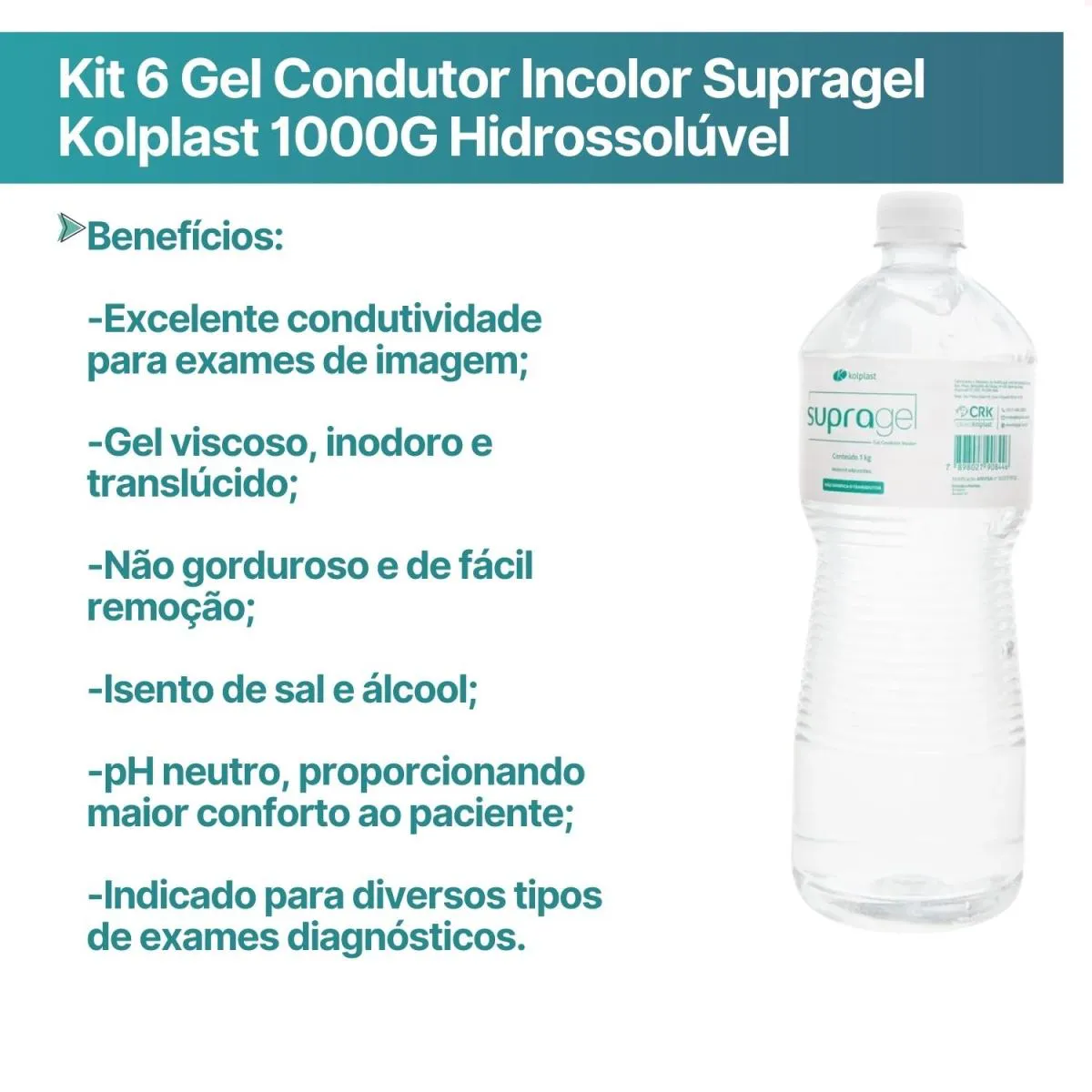 Kit com 6 Gel Condutor Incolor Supragel Kolplast 1Kg Inodoro
