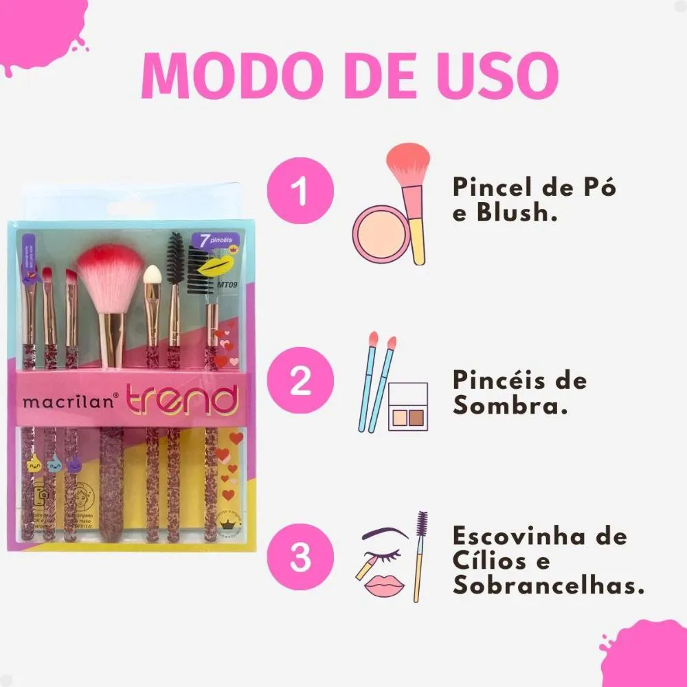 Kit com 7 Pincéis Macrilan Trend Cores Variadas Mt09
