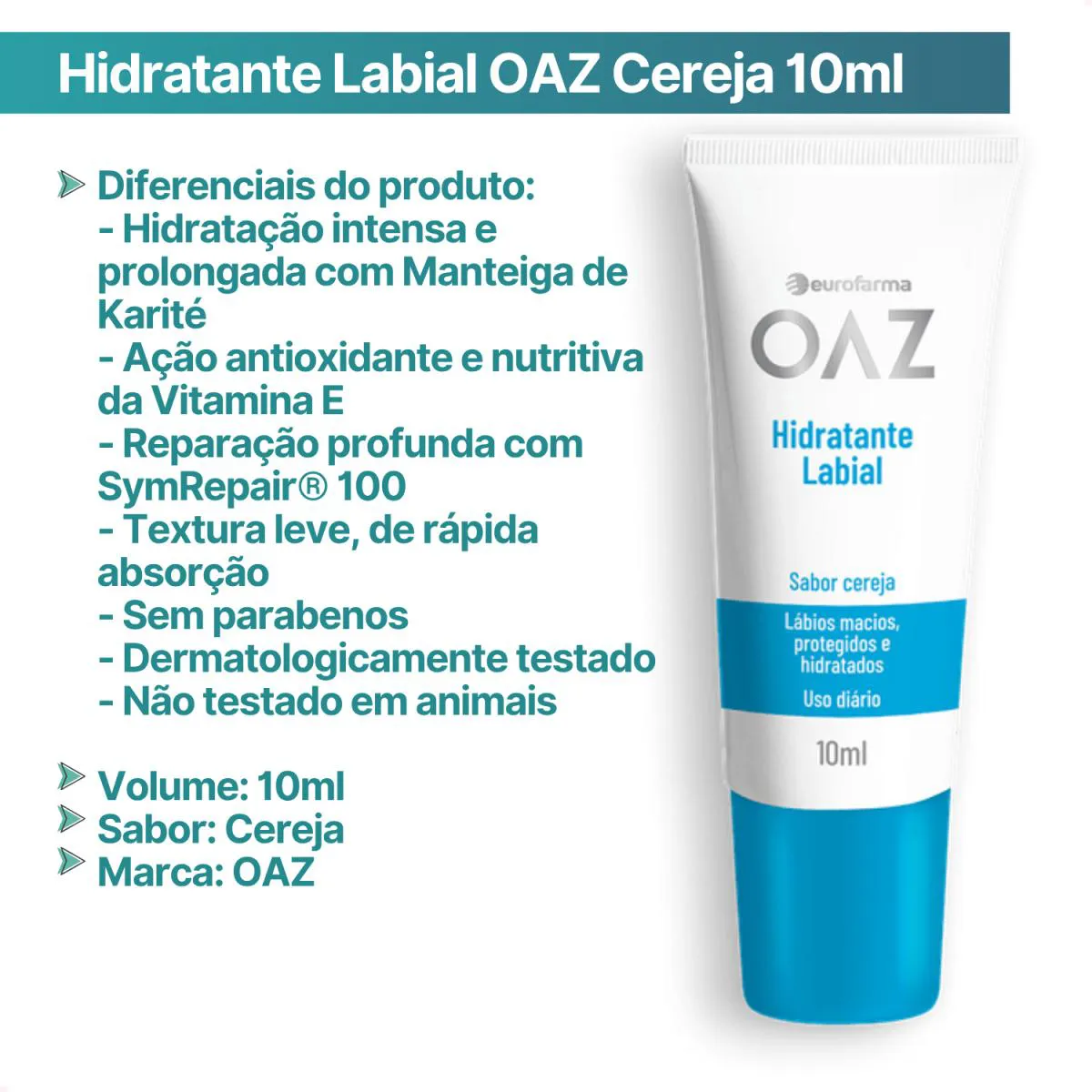 O Hidratante Labial OAZ Sabor Cereja foi desenvolvido para cuidar intensamente dos seus lábios, mantendo a umidade natural e evitando o ressecamento. Com fórmula rica em ativos poderosos, proporciona hidratação profunda e proteção diária, deixando os lábios macios, saudáveis e com um delicioso toque de cereja.
