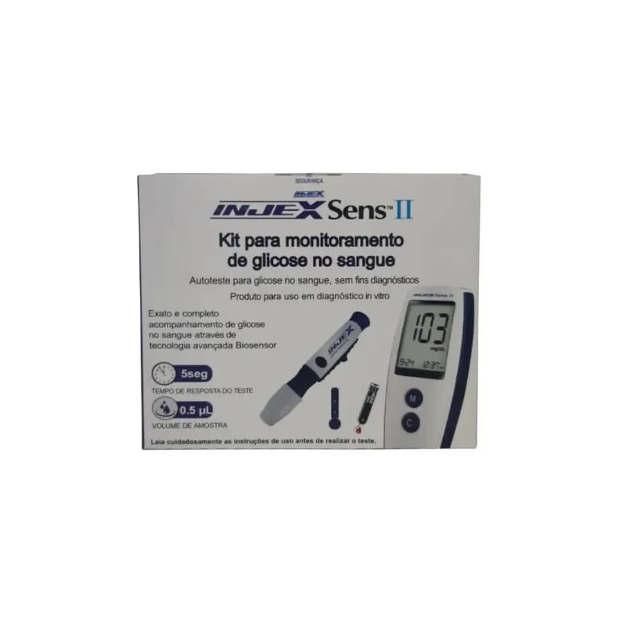 O Sistema de Monitoramento de glicose no sangue Injex Sens II é utilizado para medir o nível de glicose no sangue capilar, auxiliando no monitoramento da diabetes de forma eficaz em casa ou em ambientes clínicos. O Sistema de Monitoramento de glicose no sangue Injex Sens II deve ser utilizado apenas para auto-teste fora do corpo (apenas em diagnóstico in vitro).
