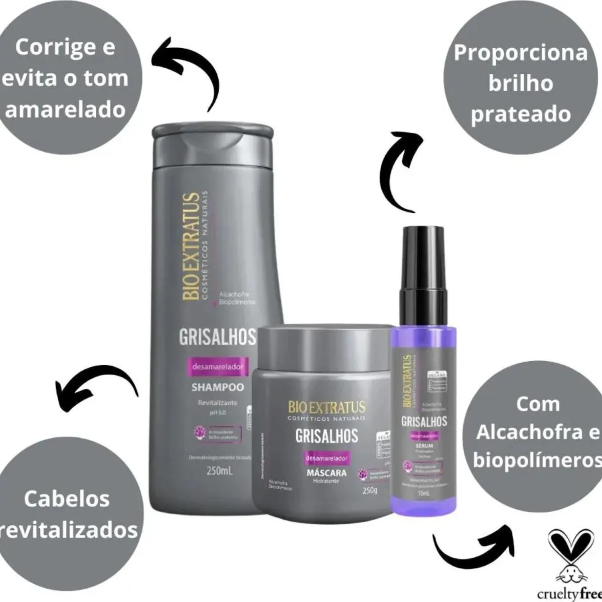 O Kit Completo Grisalhos – Bio Extratus é um conjunto de produtos capilares desenvolvido especificamente para cabelos grisalhos, composto por shampoo, condicionador ou máscara e sérum finalizador. Seu objetivo principal é cuidar integralmente dos cabelos grisalhos, oferecendo hidratação, nutrição e proteção desde a raiz até as pontas.
