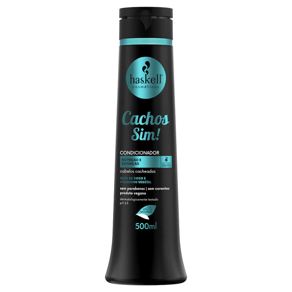 condicionador Cachos Sim! Proporciona alta emoliência aos cabelos cacheados e deixa os fios mais definidos e brilhantes.