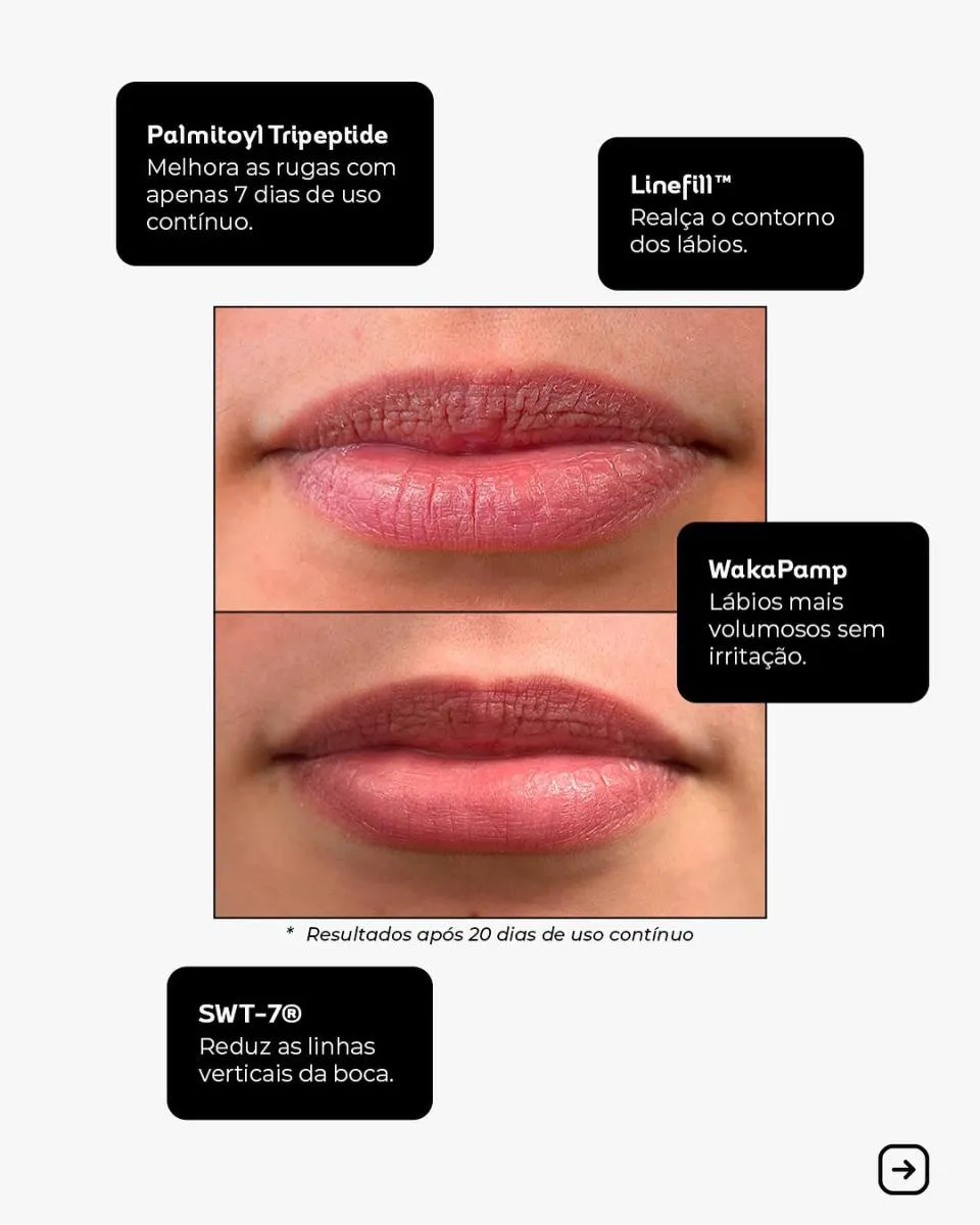 - Suaviza linhas verticais ao redor dos lábios com tecnologia de peptídeos.