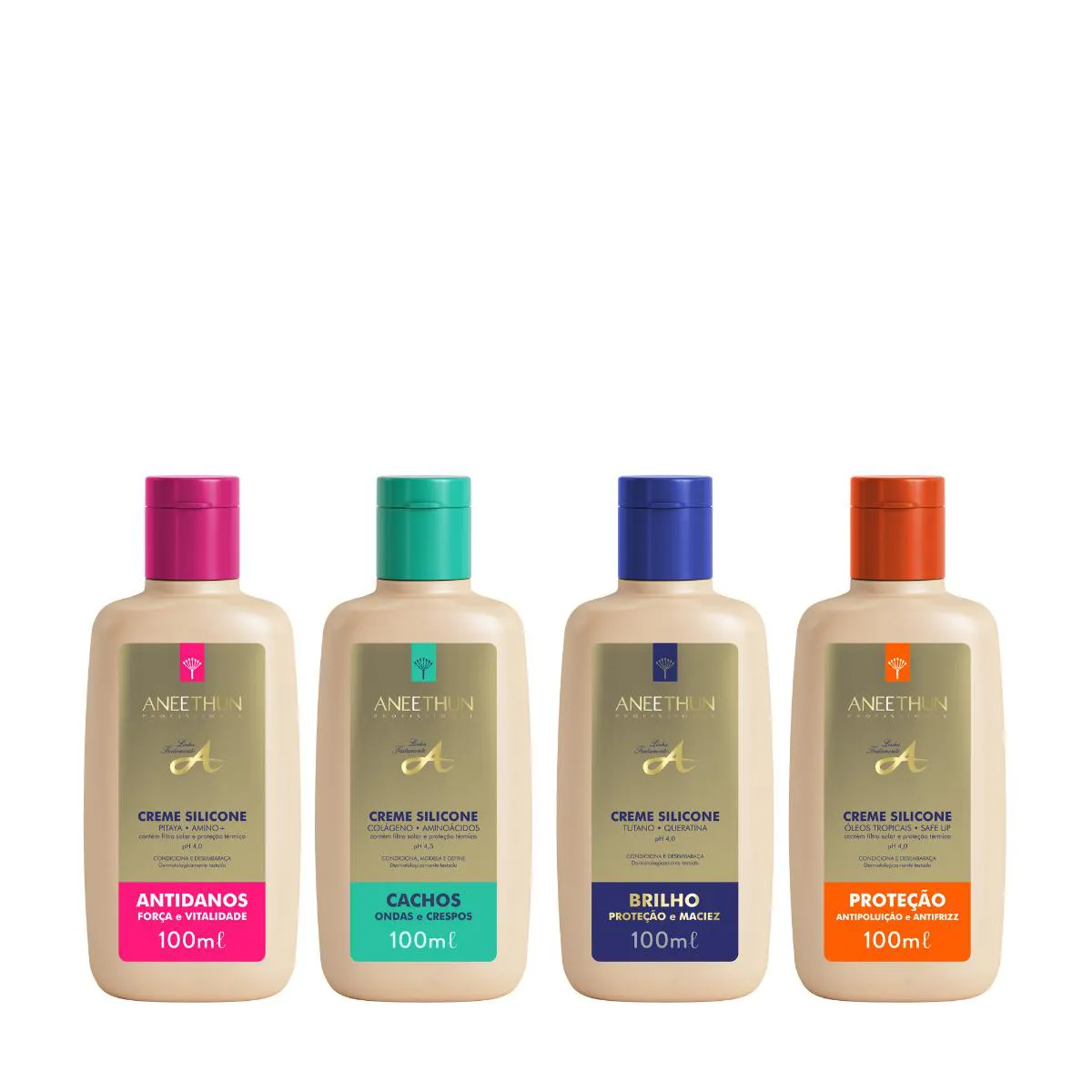 Kit Cremes de Silicone Antidanos Proteção Cachos e Linha a 100ml - Aneethun