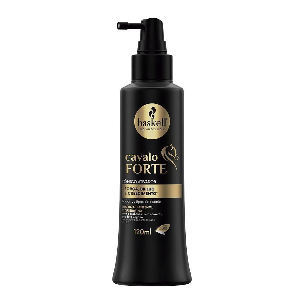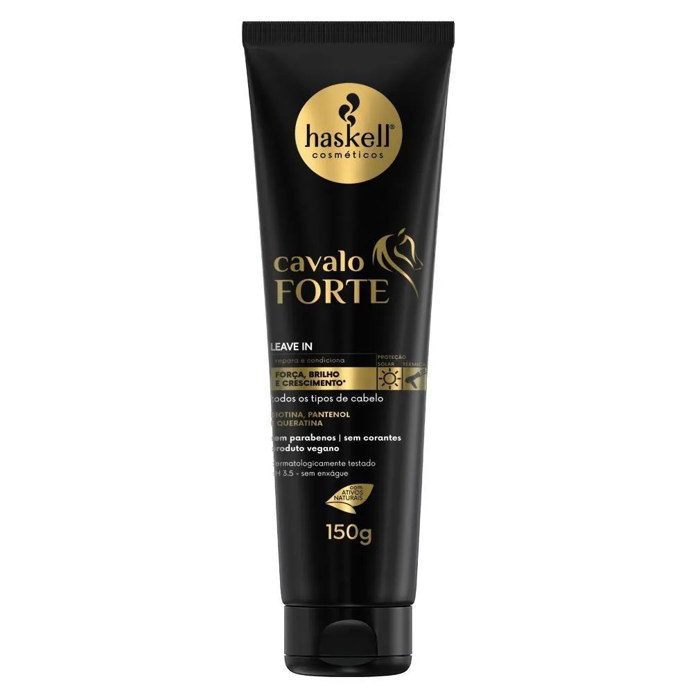 A linha Cavalo Forte foi especialmente desenvolvida para fortalecer e auxiliar no crescimento dos cabelos. Sua concentrada possui biotina, pantenol e queratina, ativos que, juntos, promovem um tratamento de alta performance. Isso reduz o risco de quebra, reconstrói e reforça a estrutura interna do fio, proporcionando cabelos mais fortes e saudáveis. O kit contém: shampoo Cavalo Forte 300ml condicionador Cavalo Forte 300ml máscara de Tratamento Cavalo Forte 300g Leave-in Cavalo Forte 150g Selante de Pontas Cavalo Forte 35ml Complexo Fortalecedor Cavalo Forte 35ml Tônico Ativador de Crescimento Cavalo Forte 120ml Benefícios: Fortalece os cabelos. Auxilia no crescimento dos fios. Reduz o risco de quebra. Reconstrói e reforça a estrutura capilar. Indicação: Para cabelos opacos e com dificuldade de crescimento. Direção olfativa: floral verde. DÚVIDAS FREQUENTES: Qual a validade do produto? Haskell! tem validade de 2 anos a partir da data de fabricação. Tem em estoque? Temos todos os nossos produtos disponíveis para . Produto? Adquirido diretamente do distribuidor autorizado Haskell!. personalizado? Elaboração de kits sob medida. OBSERVAÇÕES SOBRE A COMPRA: Mimos e + mimos e com o pedido sempre tem um cupom! Sabia!? Compras efetuadas até as 14 hrs serão enviadas no mesmo dia. Compras efetuadas sexta-feira após as 14 hrs serão enviadas no dia útil seguinte. Todos os produtos são enviados com . Caso seu produto chegue não se preocupe, fale com a gente! NA