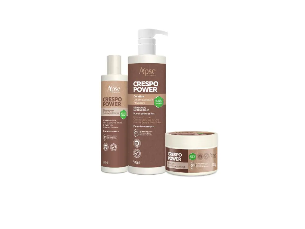 Kit Crespo Power Shampoo Máscara e Gelatina Apice Cosmeticos
