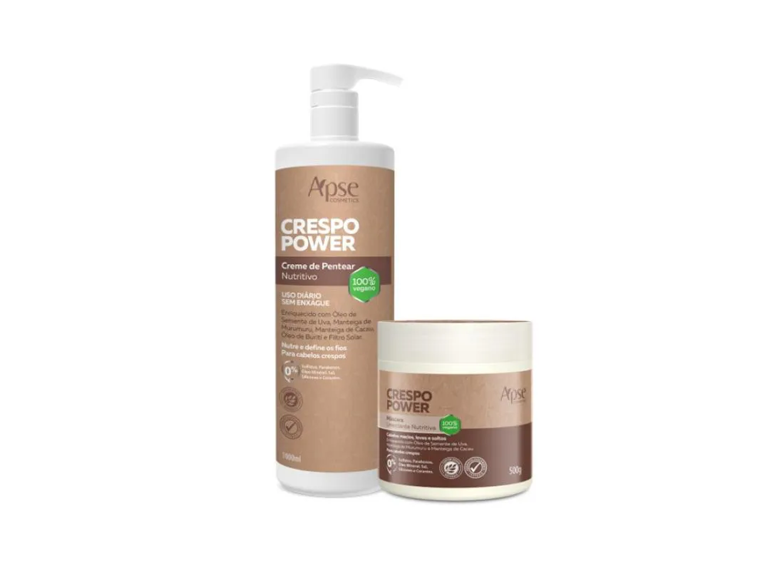 Kit Crm de Pentear 1L e Máscara 500G Profissional - Apse Crespo Power