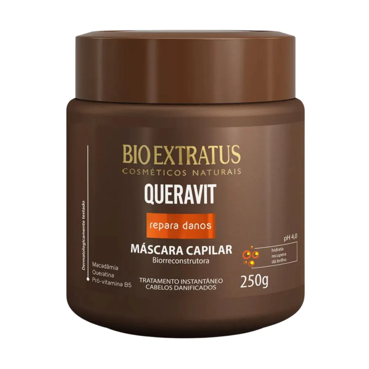 Máscara Queravit 250g Tratamento biorreconstrutor intensivo, recupera os fios danificados por agentes químicos ou naturais. Hidrata profundamente, devolve o brilho e a saúde dos cabelos. pH 4,0.