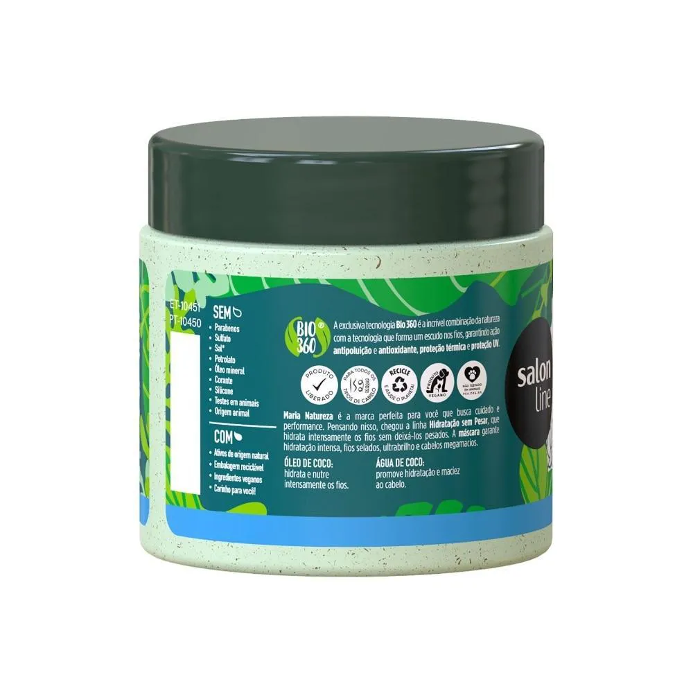 O Kit Salon Line conta com conta 1 máscara Maria Natureza Hidratação sem Pesar Óleo e Água de Coco, 1 Máscara de Hidratação Maria Natureza Nutrição Extraordinária Murumuru e Abacate, 1 Máscara de Hidratação Maria Natureza Reconstrução Reparadora, 1 Creme para Pentear Hidratação Profunda, 1 Creme para Pentear Reconstrução Intensa e 1 Creme para Pentear Nutrição Reparadora.