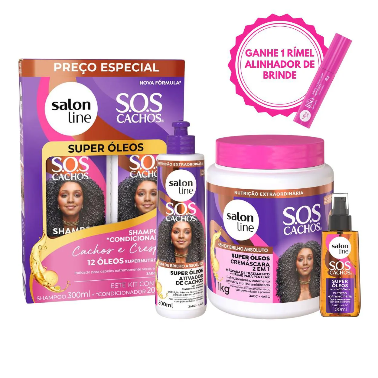 O Kit Cuidado Capilar Cachos Super Óleos Nutrição Salon Line chegou para dar aos seus cabelos a hidratação e nutrição que eles merecem.