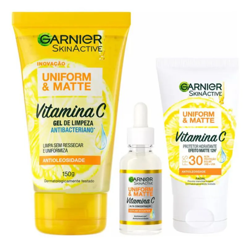 KIT CUIDADO FACIAL CLAREADOR VITAMINA C GARNIER 3 ITENS