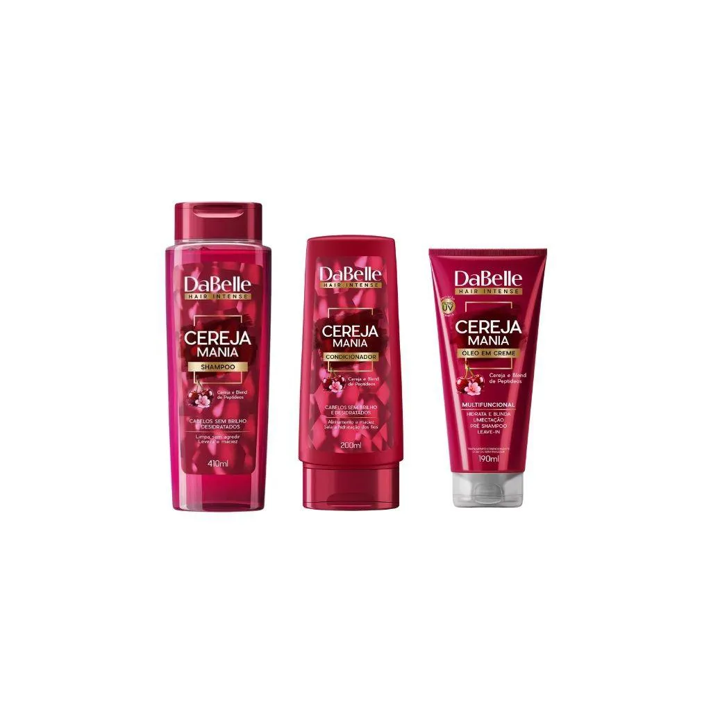 KIT DABELLE CEREJA MANIA shampoo 410ML + condicionador 200ML + ÓLEO CREME 190ML Este kit contém: