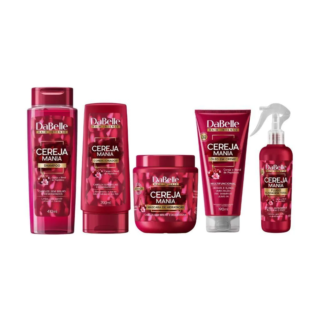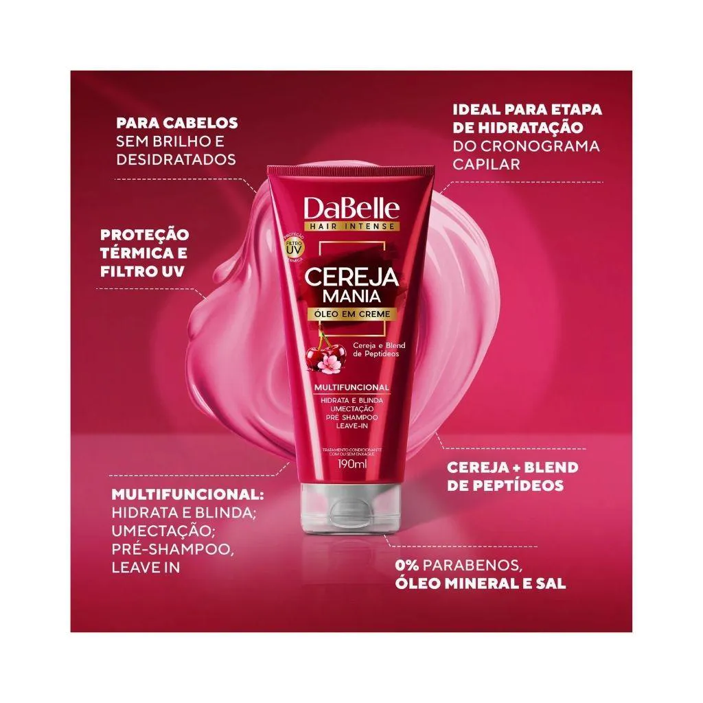 KIT DABELLE CEREJA MANIA shampoo 410ML + condicionador 200ML + máscara 400G + ÓLEO CREME 190ML + FLUIDO CAPILAR SPRAY 180ML Este kit contém: