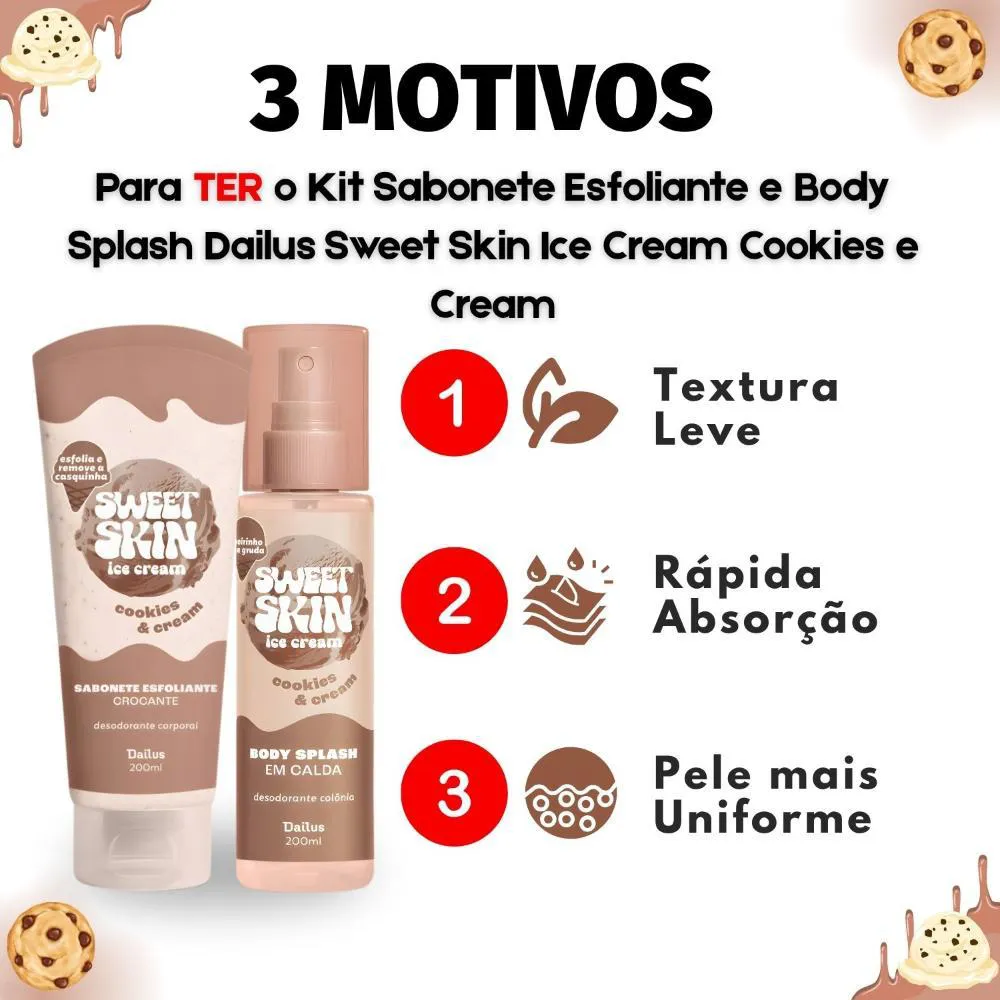 Kit Dailus Sweet Skin Ice Cream Cookies e Cream: Sabonete Esfoliante Corporal e Body Splash 200Ml