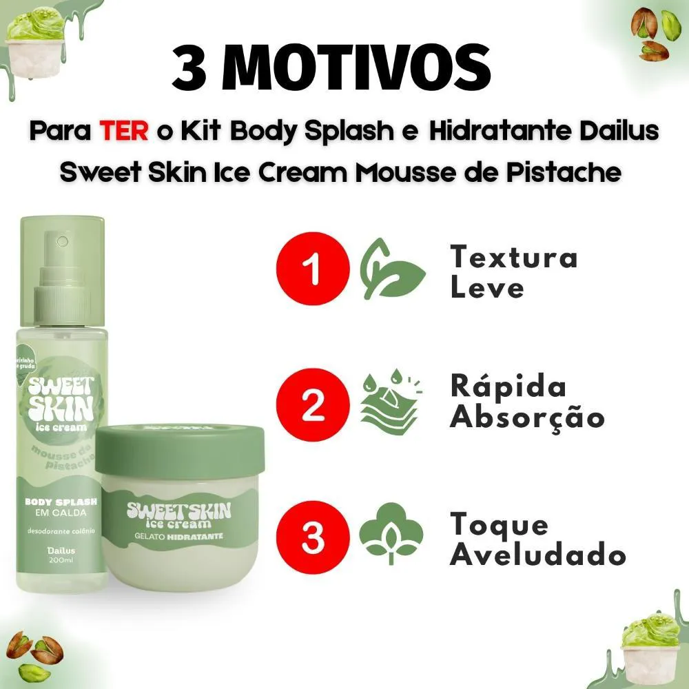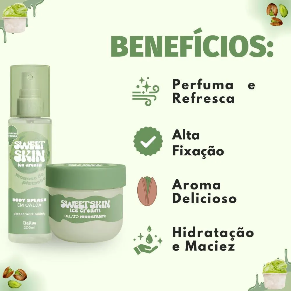 Kit Dailus Sweet Skin Ice Cream Mousse de Pistache: Body Splash e Hidratante Corporal 200Ml