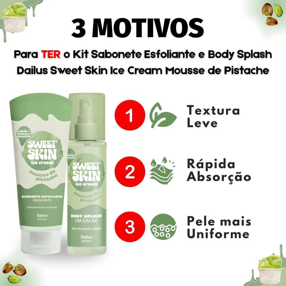 Kit Dailus Sweet Skin Ice Cream Mousse De Pistache: Sabonete Esfoliante e Body Splash 200ml