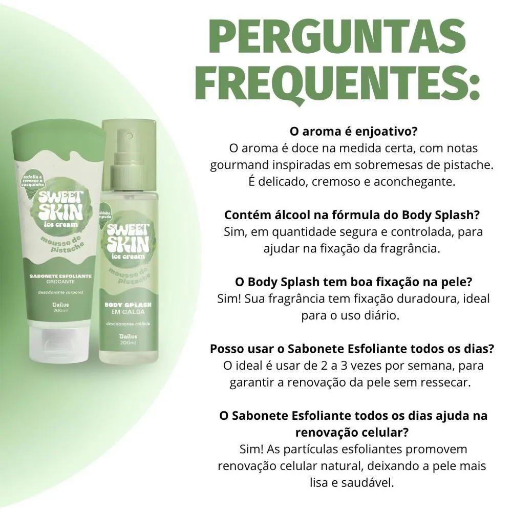 Kit Dailus Sweet Skin Ice Cream Mousse de Pistache: Sabonete Esfoliante e Body Splash 200Ml