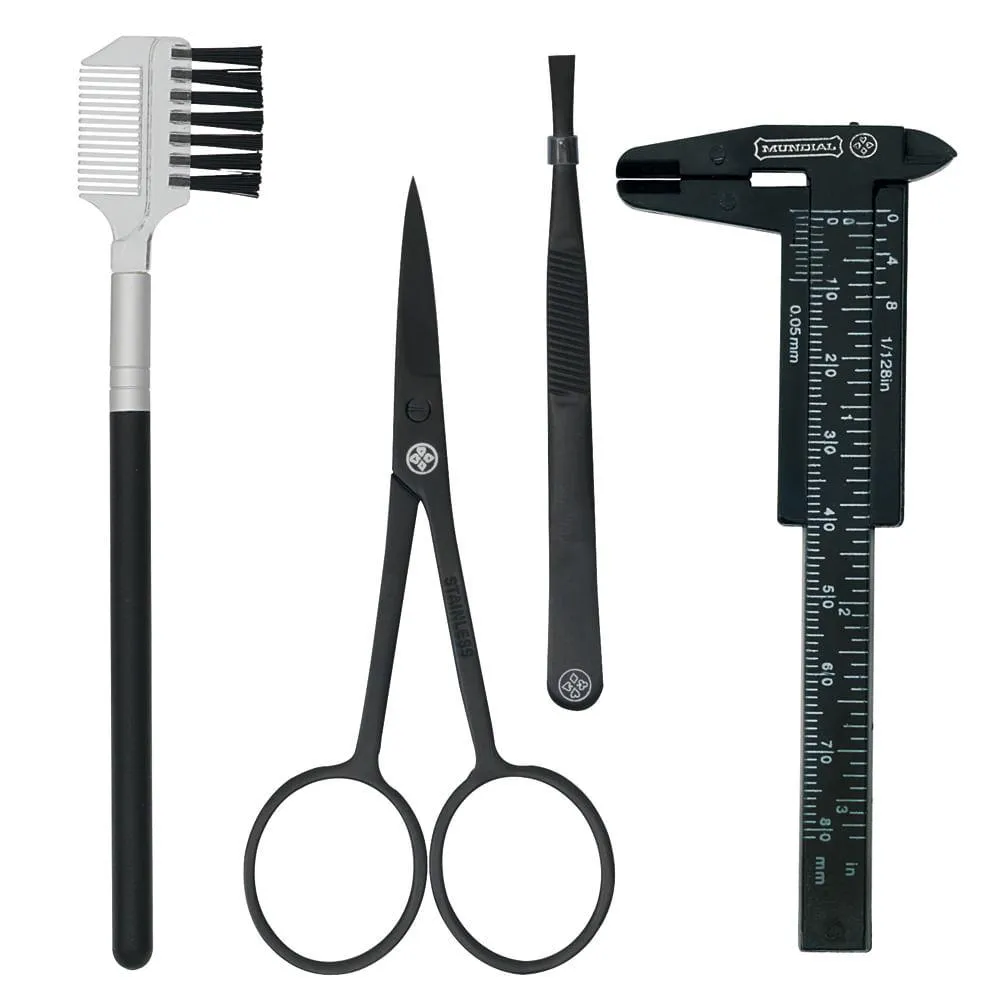 O Kit Design para Sobrancelhas BC-320 de Mundial é para profissionais de design de sobrancelhas, pois define o formato das sobrancelhas com alta precisão. Além disso, possui uma cobertura preta e é ideal para medir, moldar e aparar os pelos com exatidão.