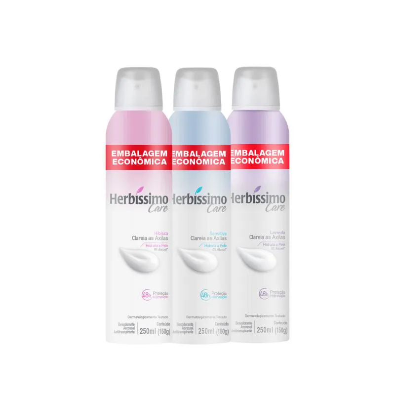 Kit Desodorante Aerossol Antitranspirante Herbíssimo Care Hibisco + Sensitive + Lavanda 250Ml