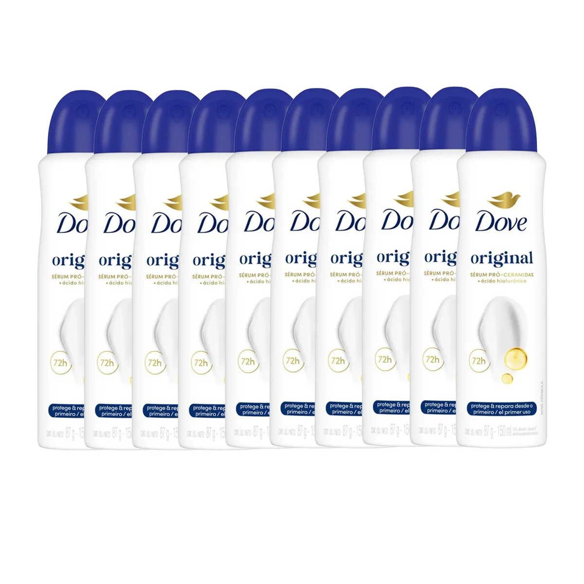 Kit Desodorante Antitranspirante Aerosol Dove Original Feminino 72h 150ml 10 unidades